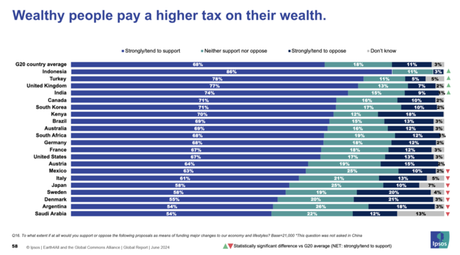 G20 18개국 가운데 17개국(중국 제외) 국민이 부유세 신설에 대해 과반 찬성 의견을 표하기도 했다.