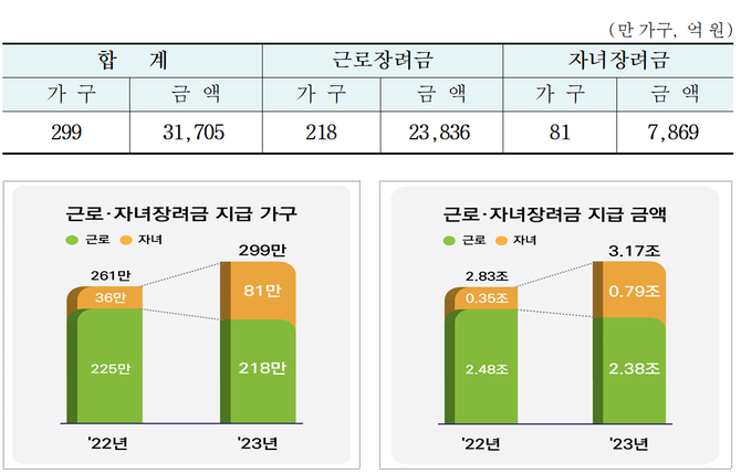 올해부터는 자녀장려금 맞벌이 가구 지급대상이 부부합산 4000만원에서 7000만원 미만으로 늘어나면서 지난해보다 2배 이상 많은 81만 가구가 혜택을 받게 됐다.