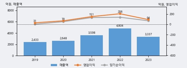 아남전자의 2023년 매출액은 3337억으로 전년대비 -30.5% 하락했고, 영업이익 역시 94억으로 전년대비 -54.6% 하락했다. 이 회사의 매출액 증감률과 영업이익 증감률은 각각 코스피 하위 5%, 하위 23%에 해당된다.