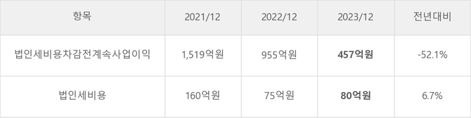 골프존뉴딘홀딩스의 지난 3년 동안 법인세 납부액 추이를 보면 2022년에는 감소했으나, 작년에는 80억원으로 증가했다.