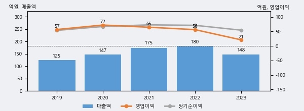 피엔케이피부임상연구센타는 2023년 매출액 148억원과 영업이익 21억원을 기록했다. 전년대비 매출은 -17.4%, 영업이익은 -62.4% 각각 하락했다. 이 회사의 매출액 증감률과 영업이익 증감률은 각각 코스닥 하위 1%, 하위 1%에 해당된다.