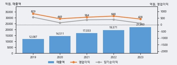 최근 3년간의 실적을 살펴보면 안정적 성장세를 보이고 있다. 최근 3년간 매출로 볼 때 매년 꾸준히 증가하고 있다. 다만 최근에 그 증가폭이 다소 감소하고 있다.