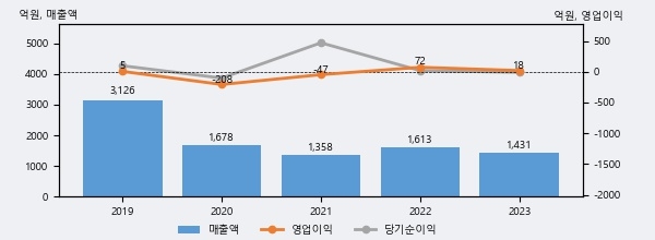 SG세계물산의 2023년 매출액은 1431억으로 전년대비 -11.3% 하락했고, 영업이익 역시 18억으로 전년대비 -74.4% 하락했다. 이 회사의 매출액 증감률과 영업이익 증감률은 각각 코스피 하위 23%, 하위 17%에 해당된다.