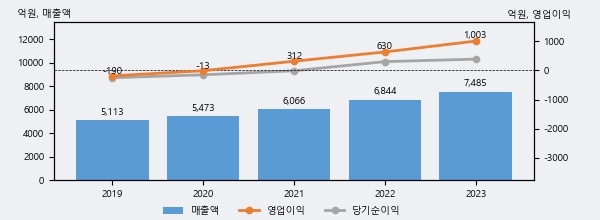 최근 3년간의 실적을 살펴보면 안정적 성장세를 보이고 있다. 최근 3년간 매출로 볼 때 매년 꾸준히 증가하고 있다. 다만 최근에 그 증가폭이 다소 감소하고 있다.