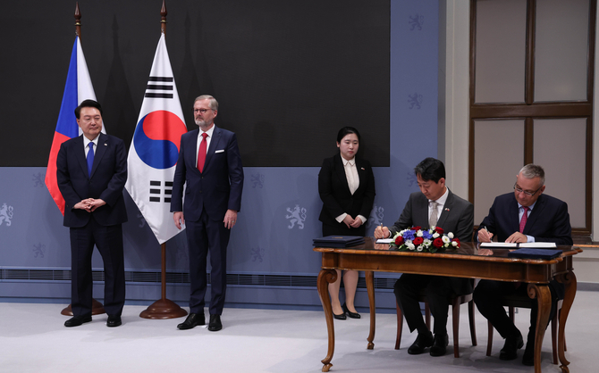 산업통상자원부는 이날 체코 프라하에서 윤석열 대통령과 페트르 피알라 체코 총리가 참석한 가운데 체코 산업통상부와 총 4건의 정부 간 양해각서(MOU)를 체결했다고 밝혔다.