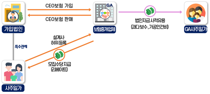 가입법인 사주의 10대 및 20대 자녀를 보험설계사로 등록하여 각각 약 1억원의 모집수당을 리베이트로 지급하거나, 가입법인 사주의 2~30대 자녀 4명을 모두 보험설계사로 등록하여 각각 수억원의 모집수당을 리베이트로 지급했다.