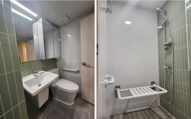 고령자의 신체적·인지적 기능 저하에 따른 안전사고를 예방하는 차원에서 '무장애 설계'도 적용한다. 현관부터 안방까지 바닥 턱을 3cm 이내로 낮추고 경사로를 설치해 낙상 위험은 줄이면서 이동 편리성은 높인다.