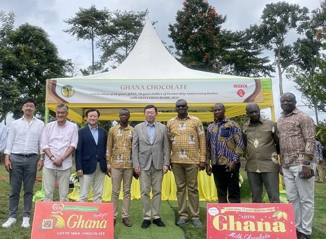 롯데그룹 식품 계열사 롯데웰푸드는 가나 현지에서 ESG캠페인도 펼친다. ‘해피 사이클 위드 가나(Happy Cycle with Ghana)’라는 주제로 사회 공헌 활동을 진행할 예정이다. 또 이달 말 경 한·일 롯데의 카카오 봉사단이 가나를 방문해 약 4000명의 어린이들에게 카카오쉘 업사이클링(카카오 부산물 재활용) 공책과 필통을 기부한다.