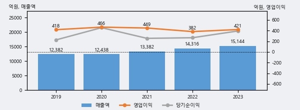 최근 3년간의 실적을 살펴보면 안정적 성장세를 보이고 있다. 최근 3년간 매출로 볼 때 매년 꾸준히 증가하고 있다. 다만 최근에 그 증가폭이 다소 감소하고 있다.