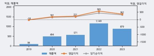 넥스틴의 2023년 매출액은 전년대비 -23.5% 줄어든 879억원이고, 영업이익 역시 전년대비 -36.0% 줄어든 362억원을 기록했다. 이 회사의 매출액 증감률과 영업이익 증감률은 각각 코스닥 하위 17%, 하위 40%에 해당된다.