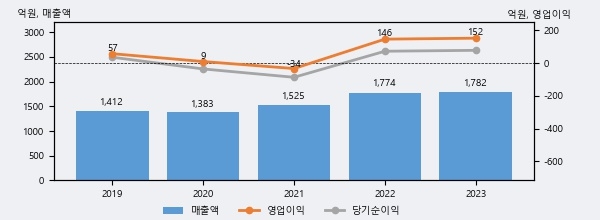 한일단조의 2023년 매출액은 1782억으로 전년대비 0.5% 상승했고, 영업이익 또한 152억으로 전년대비 4.0% 상승했다. 이 회사의 매출액 증감률과 영업이익 증감률은 각각 코스닥 상위 50%, 상위 38%에 해당된다.