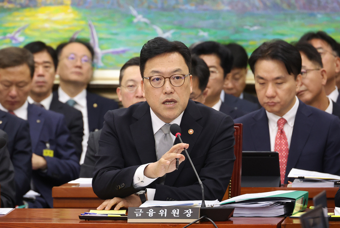 이 원장은 이헌승 국민의힘으로부터 ‘금감원의 그림자 규제가 과도해 관치금융의 폐단이 커지고 있다’는 지적을 받자 “지난 7~8월 가계대출 쏠림 같은 경우에는 과점적 형태의 은행 시장이 작동을 제대로 안 한다고 볼 수 있는 부분이 있었다”며 “2022년 말 레고랜드 사태라든가 최근에 가계대출 급등 등 시장 쏠림 현상이 있을 때 어떤 형태로 역할을 해야 되느냐에 따라 다양한 가치관이 있을 수 있다. (은행들에) 감독행정 범위 내에서 과거 포트폴리오 관리 계획을 제출한 것에 맞춰 연내 관리를 해달라고 요청한 것”이라고 설명했다.