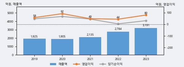 최근 3년간의 실적을 살펴보면 안정적 성장세를 보이고 있다. 최근 3년간 매출로 볼 때 매년 증가하고 있다. 다만 최근에 그 증가폭이 다소 감소하고 있다.