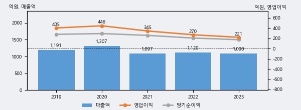 미투온의 2023년 매출액은 1090억으로 전년대비 -2.7% 하락했고, 영업이익 역시 221억으로 전년대비 -18.1% 하락했다. 이 회사의 매출액 증감률과 영업이익 증감률은 각각 코스닥 하위 45%, 하위 49%에 해당된다.