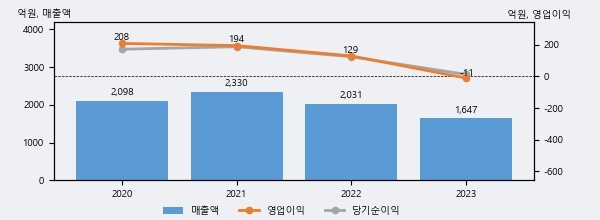 LB루셈의 2023년 매출액은 1647억으로 전년대비 -18.9% 하락했고, 영업이익은 -11억으로 적자전환했다. 이 회사의 매출액 증감률과 영업이익 증감률은 각각 코스닥 하위 22%, 하위 20%에 해당된다.