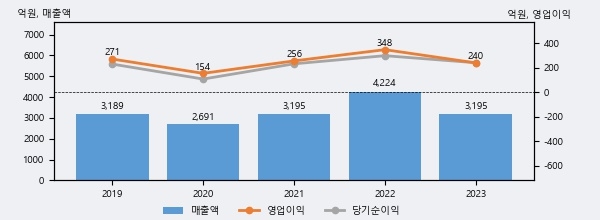 에스티아이는 2023년 매출액 3195억원과 영업이익 240억원을 기록했다. 전년대비 매출은 -24.4%, 영업이익은 -31.1% 각각 하락했다. 이 회사의 매출액 증감률과 영업이익 증감률은 각각 코스닥 하위 16%, 하위 42%에 해당된다.
