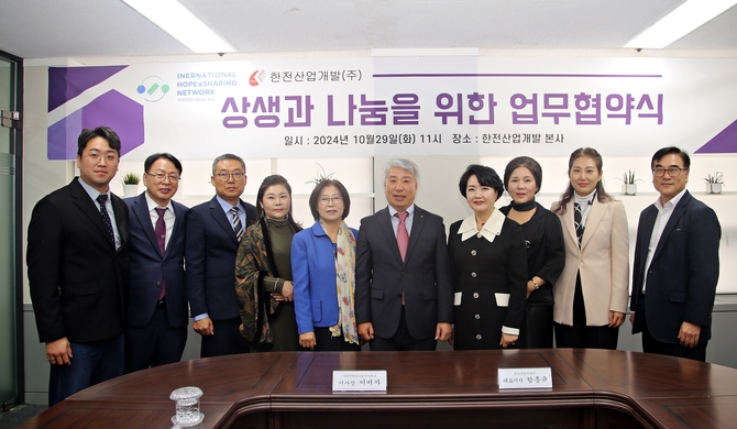 (조세금융신문=안종명 기자) 에너지 솔루션 기업 한전산업개발(대표이사 함흥규, 이하 한전산업)은 29일 한전산업 본사 7층 회의실에서 사단법인 국제희망나눔네트워크(이사장 이미자, 이하 IHSN)와 ‘상생과 나눔을 위한 업무협약’을 체결했다고 밝혔다.