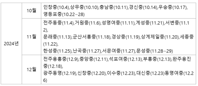 교육대상은 서울 소재 15개교와 광주동명중 등 지방 소재 15개교다.
