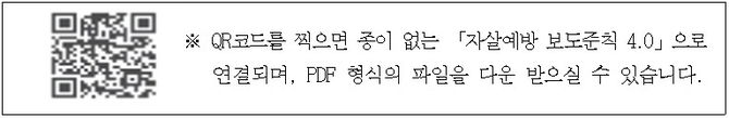 이번에 발표한 자살예방 보도준칙 4.0은 QR코드를 통해 e-북(PDF 파일 형태)으로 내려받아 볼 수 있다.