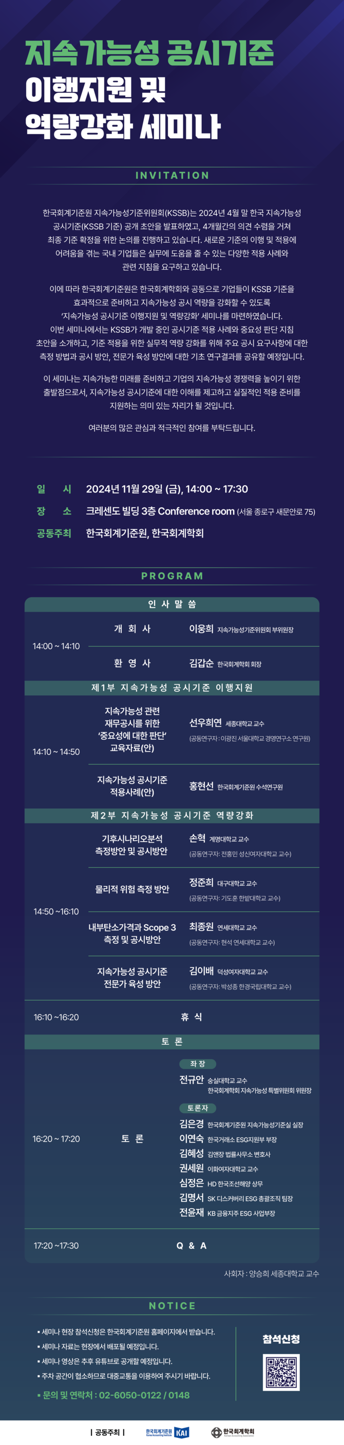 이번 세미나에서는 KSSB가 개발 중인 공시기준 적용 사례와 중요성 판단 지침 초안을 소개한다.