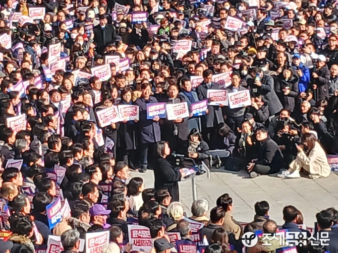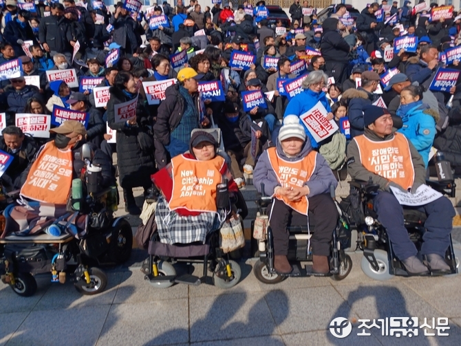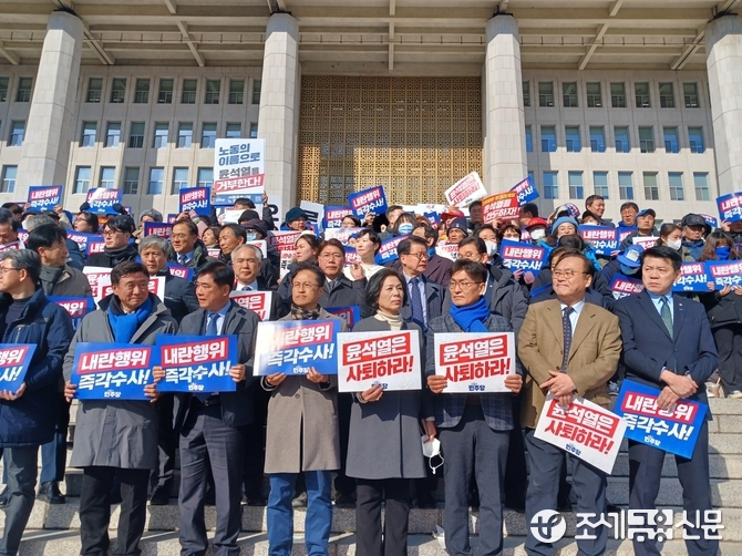 (조세금융신문=안종명 기자) 더불어민주당과 조국혁신당, 전국장애인위원회 등이 4일 국회 본청 앞 계단에서 '위헌계엄 내란행위 윤석열 대통령 사퇴 촉구 비상시국대회'를 열고 윤석열 대통령의 퇴진을 촉구했다.