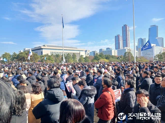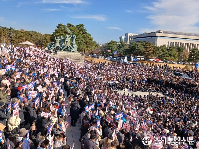 이날 시국대회에는 수많은 인파가 참여해 "위험계엄 내란행위, 윤석열은 사퇴하라" 등의 구호를 외치면서 퇴진을 강력히 요구했다.