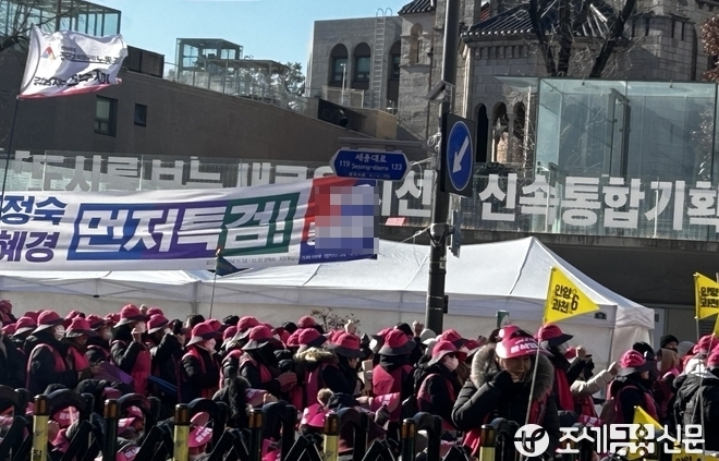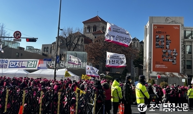 (조세금융신문=안종명 기자) 전국 학교비정규직노동조합이 6일 오후 서울 광화문 태평로에서 윤석열 정부 퇴진과 임금인상을 요구하는 전국 총파업 투쟁 집회를 시작하고 있다.