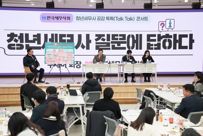 한국세무사회는 지난 9일 서초동 세무사회관에서 선·후배 청년세무사 간 공감과 소통을 위한 ‘2024 청년세무사 공감 톡톡 콘서트(이하 청년 토크콘서트)’를 개최했다고 10일 밝혔다.