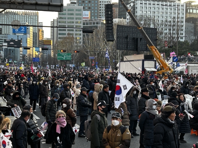 집회를 주도한 전광훈 목사는 “탄핵 가결은 무효”라며 “우리가 대통령을 지켜낼 것”이라고 했다. 참석자들은 얼이 빠진 채 자리에 그대로 서있기도 했다. 시민들은 “어떤 놈들이 우리가 뽑은 대통령을 몰아내느냐”고 했고, 눈시울이 붉어진 채 갈 곳을 잃은 이도 있었다.