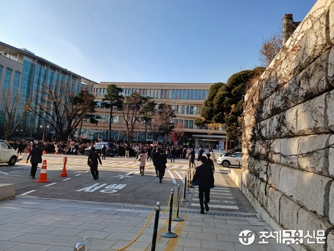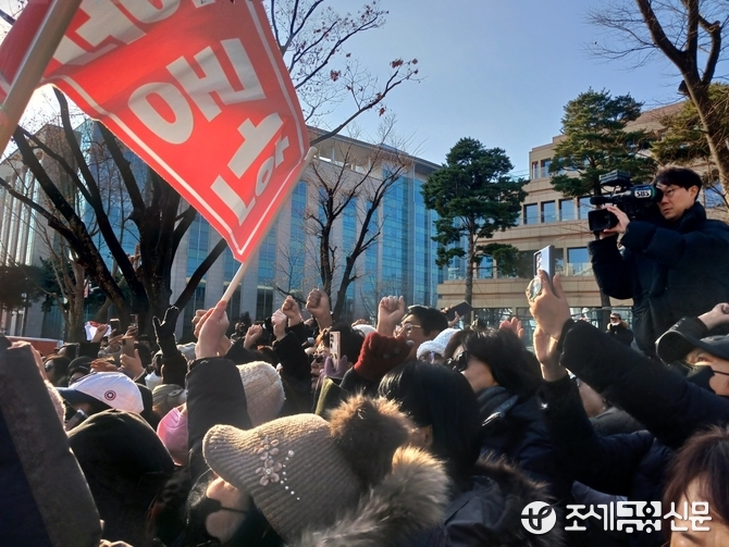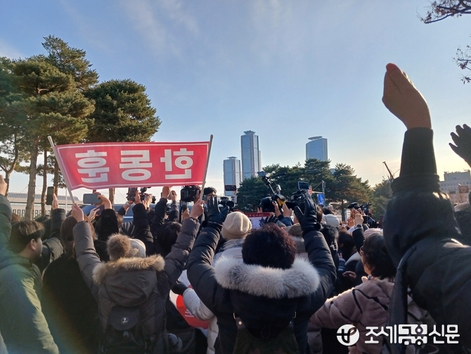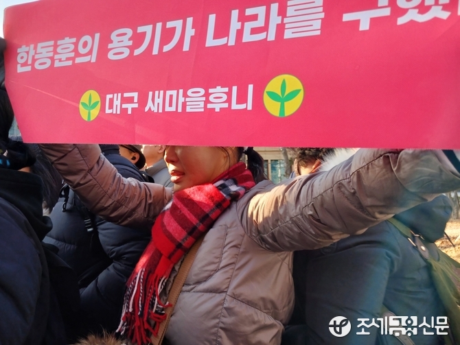 (조세금융신문=안종명 기자) 한동훈 국민의힘 대표가 16일 오전 당 대표직을 사퇴할 뜻을 밝히자 지지자들은 국회 소통관 앞에서 "한동훈 힘내라"며 격려의 함성을 외치기 시작했다.