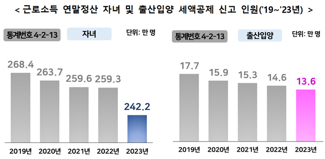 근로자 2085만명 가운데 자녀세액공제를 신고한 인원은 242.5만명에 그쳤다.