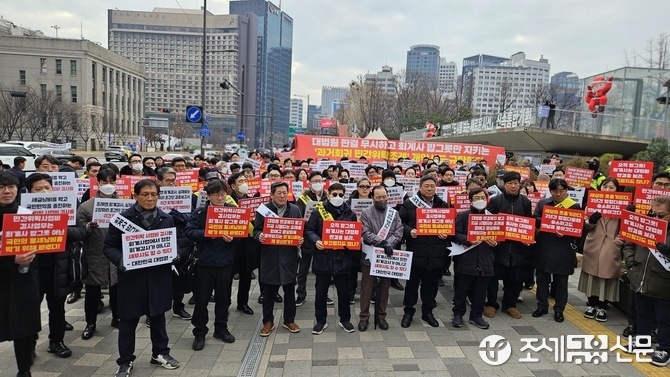 (조세금융신문=이지한 기자) "대법원 판결 무시하는 조례개정 반대한다!" "회계사 밥그릇만 챙기는 조례개정 반대한다!"