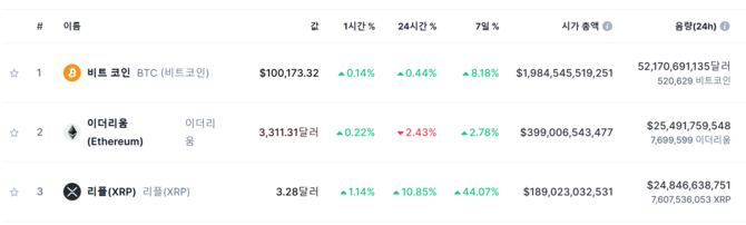 17일 오전 9시 45분 현재 가상자산 시황 중계사이트 코인마켓캡에 따르면 리플은 전일 대비 10.85%상승한 3.28달러(4768원)를 기록했다. 여기에 한국 김치프리미엄이 0.19%가량 붙어 현재 우리나라에선 4820원에 거래되고 있다.