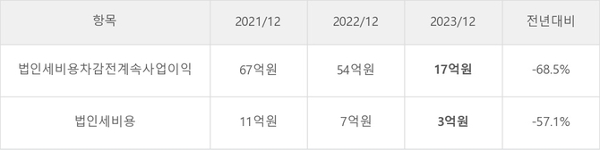 에이테크솔루션의 지난해 법인세 납부액은 3억원으로 2022년 7억원보다 -4억원(-57.1%) 감소했다. 이는 실적 감소에 따라 당기순이익도 줄었기 때문이며, 법인세 유효세율(법인세비용/법인세차감전순이익)은 17.6%를 기록했다.