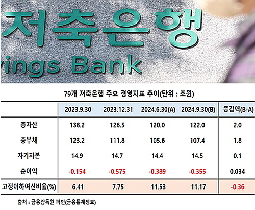 (조세금융신문=민경종 전문기자) 지난해 3분기 말 기준 79개 저축은행의 합산 경영지표 중 직전 분기말 대비 총자산과 순이익이 증가세로 반전되고, 부실채권(고정이하여신) 비율도 감소세를 보인 것으로 나타났다.