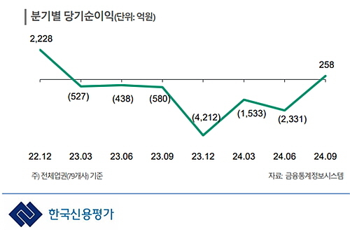 특히 분기별 순이익 추이를 살펴보면 2022년 12월 2228억 원의 순이익을 시현한 후 23년 1분기 527억 적자를 시작으로 6분기 연속 적자를 기록하더니 마침내 지난해 3분기에는 258억 원의 흑자를 시현 적자 행진에 마침표를 찍어 희망의 빛을 쏘아 올렸다.