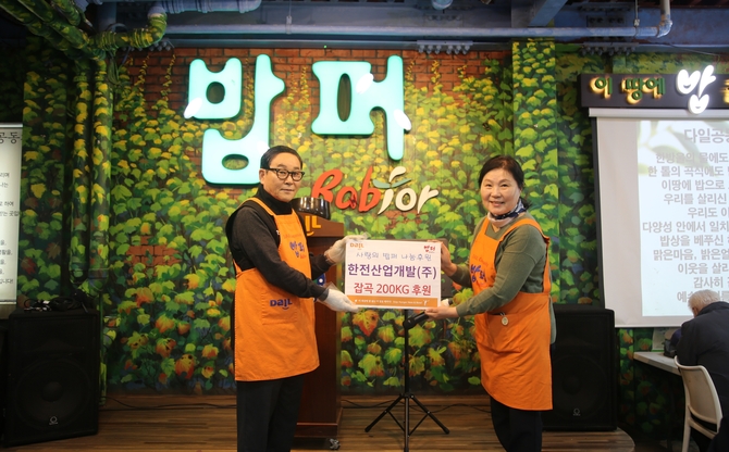 또한 한전산업은 취약계층의 건강한 식생활 지원을 위해 잡곡 200kg을 밥퍼에 기부했다.