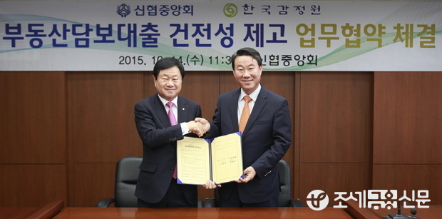 (조세금융신문=김사선 기자) 신협중앙회(회장 문철상)는 지난 14일 한국감정원(원장 서종대)과 대전 서구 둔산동 소재 신협중앙회 본부에서 ‘신협 대출 건전성 제고를 위한 업무협약’을 체결했다.