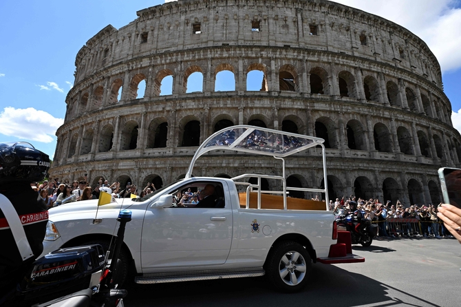 장례미사가 끝난 뒤 교황의 관을 실은 운구차가 로마 시내를 가로질러 장지인 산타 마리아 마조레 대성전(성모 대성전)으로 출발했다. 운구차는 프란치스코 교황이 2015년 필리핀 방문 때 탔던 전용차량을 개조했다.