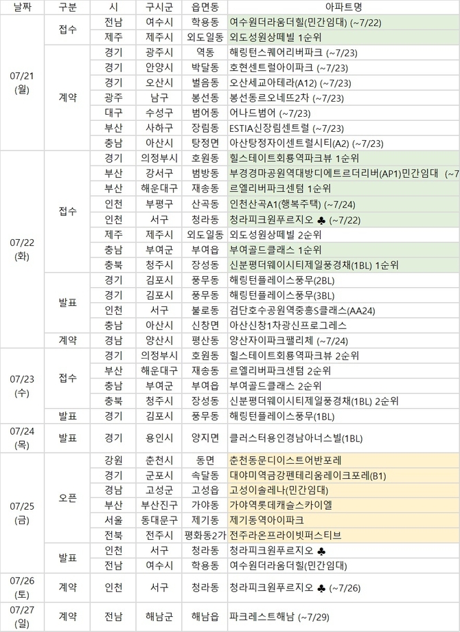 (조세금융신문=이정욱 기자) 전통적으로 비수기로 여겨지는 여름철이지만, 7월 넷째 주에는 전국적으로 분양 물량이 이어지며 일부 지역에서는 청약 열기가 감지되고 있다.