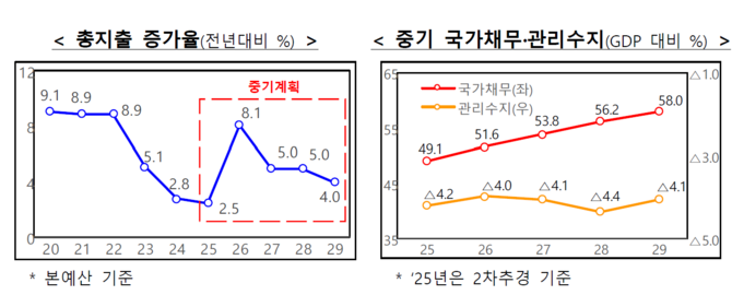 다만 적극적인 확장 재정 기조는 재정 건전성 악화라는 숙제를 남겼다. 정부는 역대 최대 규모인 27조 원의 지출 구조조정을 단행했다고 밝혔지만, 내년도 관리재정수지 적자는 올해보다 약 35조 1000억원 늘어난 109조원에 달할 것으로 전망된다.