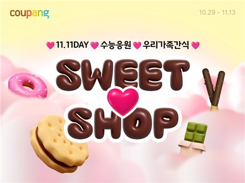 (조세금융신문=김종태 기자) 쿠팡은 2일 수능 시험과 빼빼로데이를 맞아 수험생과 연인을 위한 간식과 선물 3만여개를 모은 '스위트샵' 기획전을 오는 13일까지 진행한다고 밝혔다.