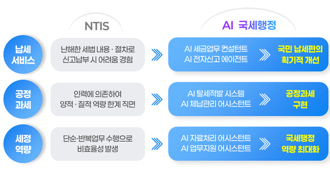 AI 대전환 부문에선 납세자에게 세무 전문가 수준의 AI컨설팅을 제공하고 탈세적발과 체납관리도 사람 중심에서 AI 중심으로 전환한다.