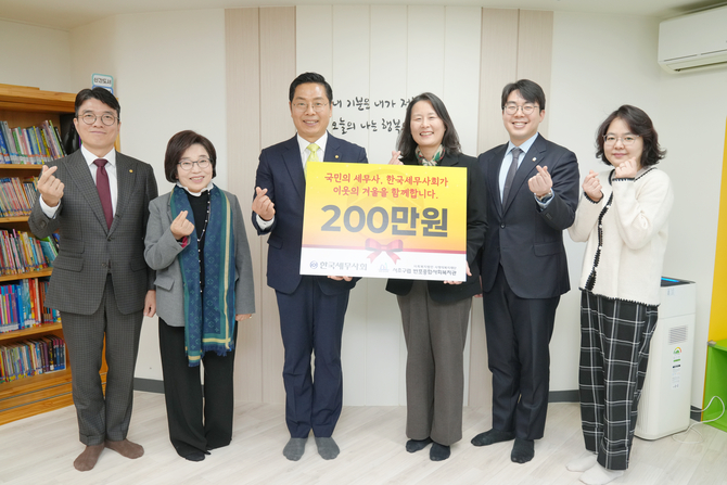 (조세금융신문=안종명 기자) 한국세무사회(회장 구재이)가 연말연시를 맞이해 지역사회 취약계층과 어르신들을 위한 나눔 활동을 이어가며, ‘국민의 세무사’로서 사회적 책임과 공공성을 실천하고 있다.