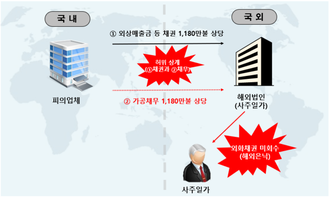 최근 사례를 살펴보면, 한 피의업체는 1,180만 달러 상당의 외상매출금 등 채권을 동일한 액수의 가공된 채무와 상계한 것으로 꾸며 해외에 은닉한 수법을 사용한 바 있다.