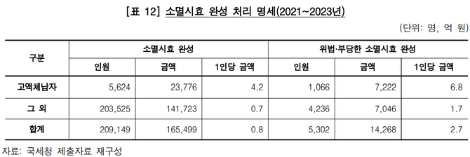 감사원 감사 결과 그렇게 부당하게 소멸된 채권은 2021년 한해 1조1891억원에 달했고, 이러한 관행은 2022년, 2023년에도 지속돼 1조4268억원의 국세 채권이 불법적으로 소멸됐다.