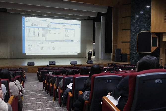 이날 서울 건국대학교에서 OmniEsol 및 ERP iU 고객 기업 실무자를 대상으로 진행된 연말정산 집중 교육에는 기업의 인사 및 회계 담당자들이 대거 참석해 솔루션에 최적화된 연말정산 노하우 등을 공유받았다.