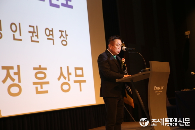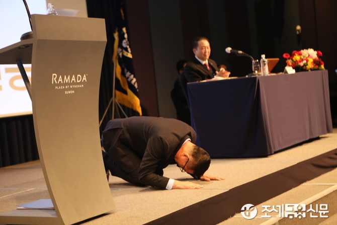 김현봉 신임 협회장은 당선 소감에서 한동안 말을 잇지 못하고 한 참 후에야 인사말을 전했다.