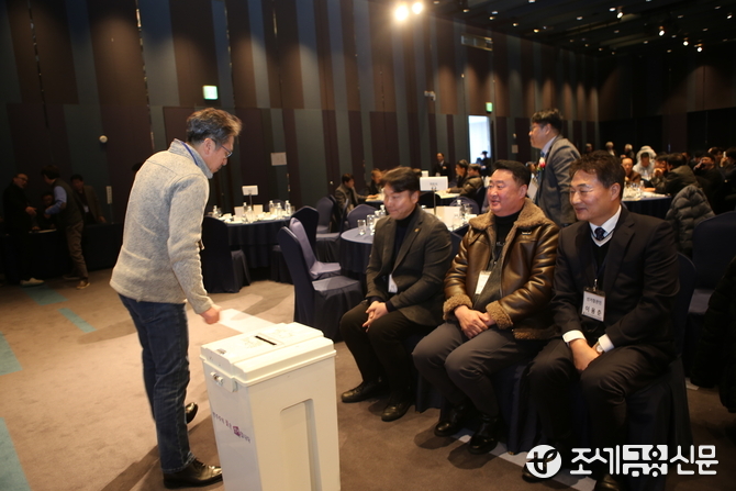 (조세금융신문=안종명 기자) 경기남부지방종합주류도매업협회의 향후 3년을 이끌 새로운 수장을 선출하는 자리는 그 어느 때보다 뜨거웠다. 사상 첫 3파전으로 치러진 이번 선거는 1차 투표에서 과반수 득표자가 나오지 않아 결선 재투표까지 가는 긴박한 상황이 연출되었다.