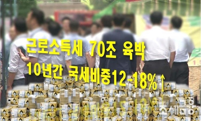 정부는 당초 올해 예산에서 근로소득세가 68조5천억원 걷힐 것으로 전망했는데, 지난해 실적이 이미 비슷한 규모로 걷히면서 올해는 70조원대에 진입할 가능성도 나온다. 또 명목임금이 상승하는 만큼 과세 체계를 손볼 필요가 있다는 주장도 제기됐다.